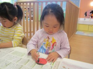 見本を見ながら、みんな真剣な表情でグルグルと上手に模様を描いていました(*^^*)
