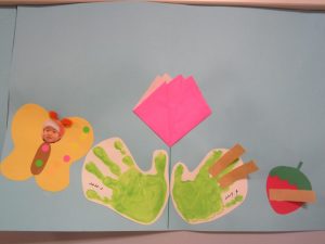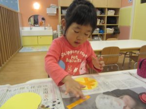 ちょうちょ?の羽には丸シールで模様をつけました(*^^*)