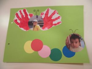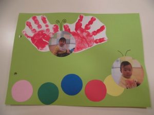 もも組さんはあおむしとチョウチョ?の製作をしました![]()