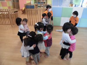 最後はもも組さん、いちご組さんのお友だちとギュ~~~~っ