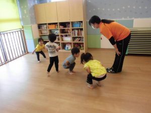 今週は先週に引き続き、月・金曜日に行っている『リトミック』と水曜日に行っている『体操』をご紹介します(^O^)