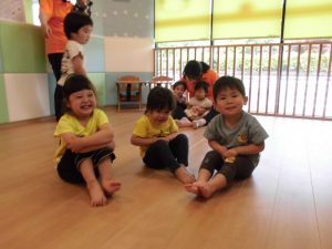 最後は座って話を聞く姿勢《お山だっこ》で終わりますが、みんな笑顔を見せ楽しんでいますよ