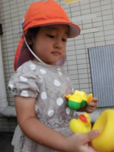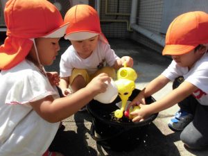 りんご組さんは体に水がかかるのも気にせず、ダイナミックに水を掛け合ったり、水鉄砲にも挑戦していました