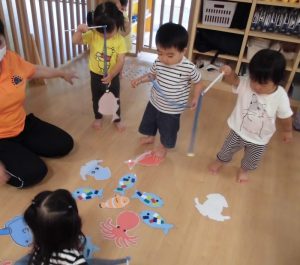 新型コロナの自粛により、打ち上げ花火や海水浴を楽しむことが出来ない中、せめて保育園では夏ならではの遊びを楽しんでもらおうと、様々な工夫をしています。