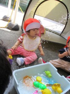 最初は場所に慣れなかったり、水に触るのが怖くて、泣いてしまっていたもも組さんのお友だちもいましたが