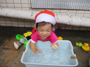 何度か水遊びを行ううちに自分から水の中に手を入れてみたり、