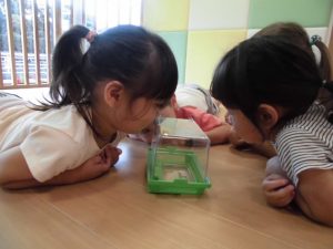 保育園に帰って来てからも夢中で虫かごの中を見ていました(^-^)