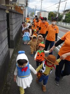 例年、素敵な衣装を身に着けて園の周辺をパレードしつつ、ご近所の方に挨拶をしているのですが、今年は新型コロナウイルスの影響を受け、近くをパレードするのみに変更しました。