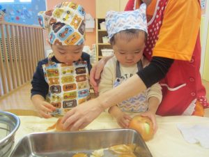 今週はいちご組、りんご組の食育の様子を紹介したいと思います