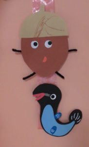 目も黒シールと丸く切った白画用紙を自分でのりで貼りました(*^^)v