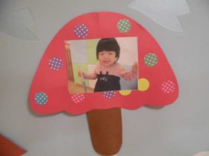 真ん中には、かわいいもも組さんのお友達の写真を貼りました