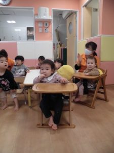 今月のお誕生児は2歳児の女の子1名、1歳児女の子1名、0歳児の女の子1名です?