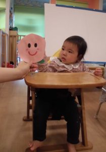 お誕生カードを保育者からプレゼントされると、とてもかわいい笑顔が見られました(^-^)