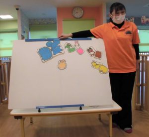 最後に先生からのプレゼントはパネルシアター「ねてるこだあれ」です✨