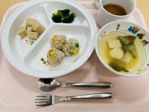 ※高野豆腐の煮物の高野豆腐は、食べなれない食材ですが頑張って食べていました!少しずつ色々な食材にチャレンジしていけたら良いですね。