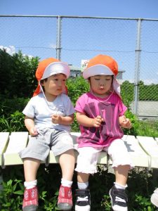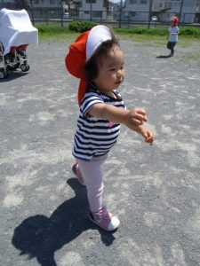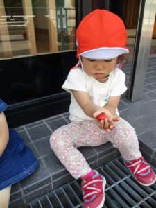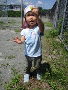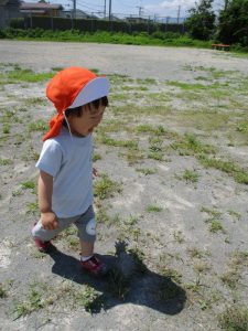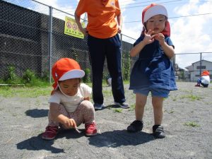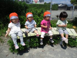 毎日、蒸し暑い日が続き、子どもたちの額や身体にも汗が見られるようになってきました!それでも子どもたちは元気いっぱい?お散歩へ行く前には「今日は公園に行くかな~?」「今日は鯉さん、いるかな~?」とどこへ行くのか楽しみにする声が聞こえてきています![]()