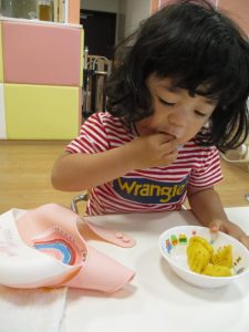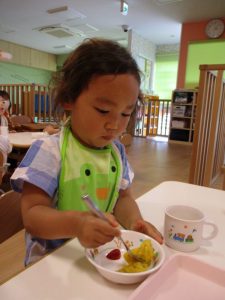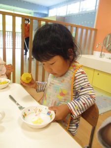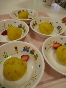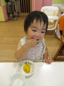 収穫した日に、調理師さんにお渡しし、その日の午後のおやつに出してくれました![]()