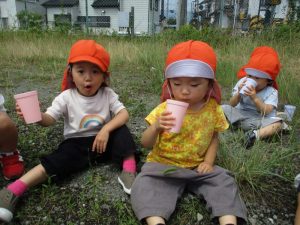 今週から梅雨入りが発表されたと思いきや…降水量は少なく、毎日暑い日が続いていますね大人は夏の様な日差しに体力を奪われてしまい、日々ヘトヘトになってしまいがちですが、そんな時期の中でも子どもたちは元気いっぱいです朝の会でお日様が見えている日には「公園行く?」と必ず聞くほど、お散歩が楽しみになっています水分補給を欠かさずに過ごしていきましょうね。