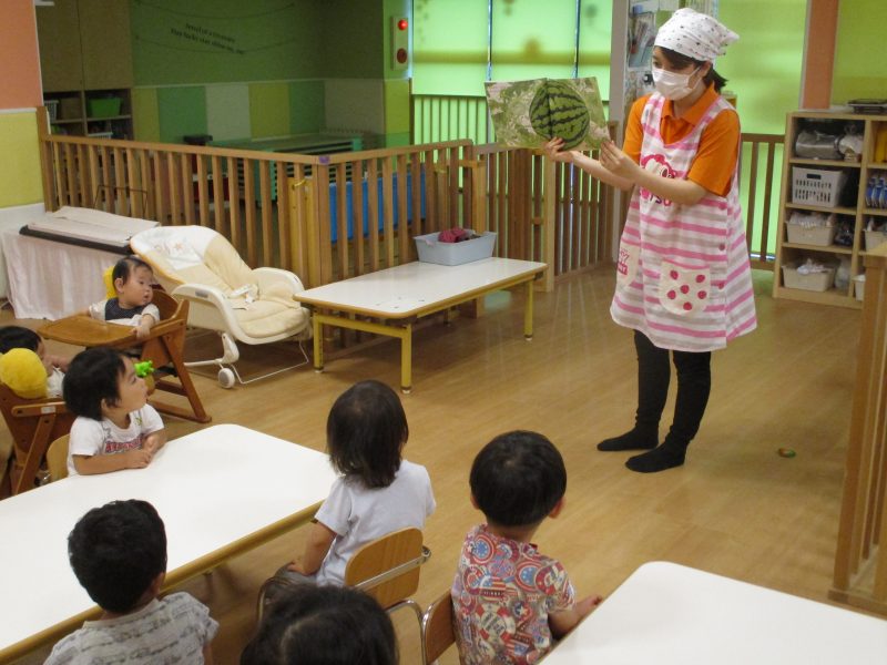 子どもたちは大喜びで絵本を見ながら「パクパク〜」と食べる真似をしていました。