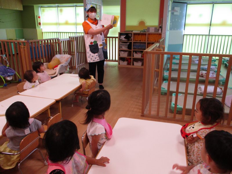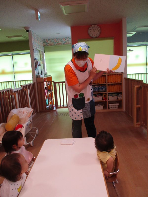 子どもたちもバナナさんやたまごさんが「こんにちは!」と挨拶すると、「こんにちは!」と言ったりお辞儀をしたりととても楽しそうにしていました![]()