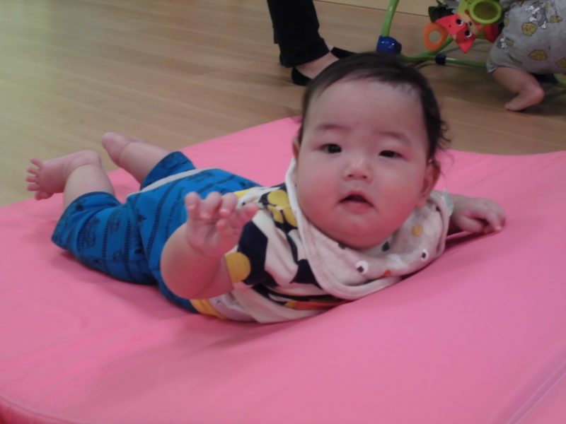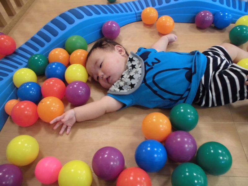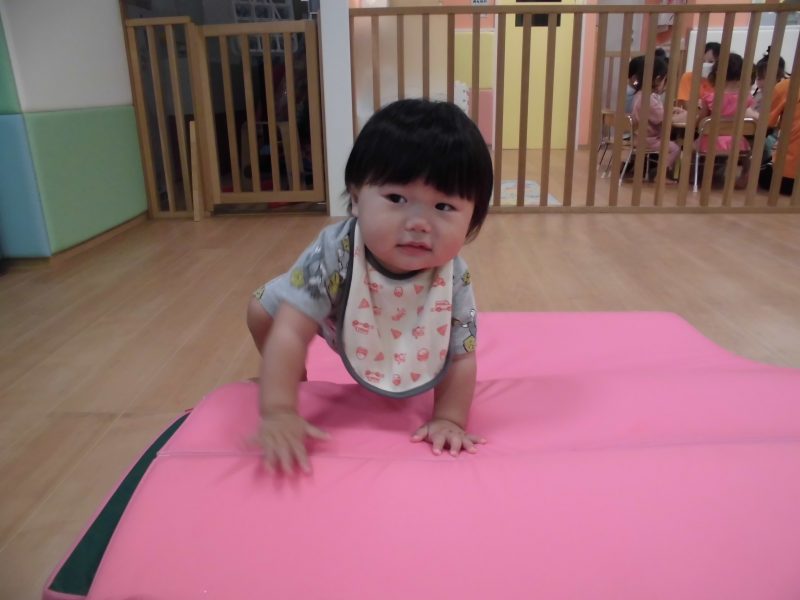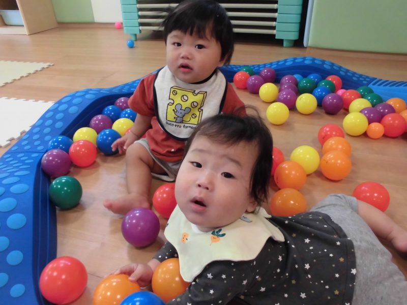 午前寝が大切であるもも組さんでは、お部屋の中でボールやマットを使った身体運動遊びを行なっています![]()