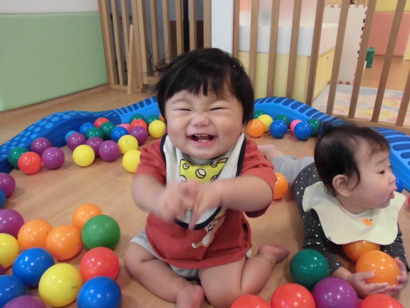 ボールを目や身体で追いかけることで身体の使い方を学んでいるようでした![]()
