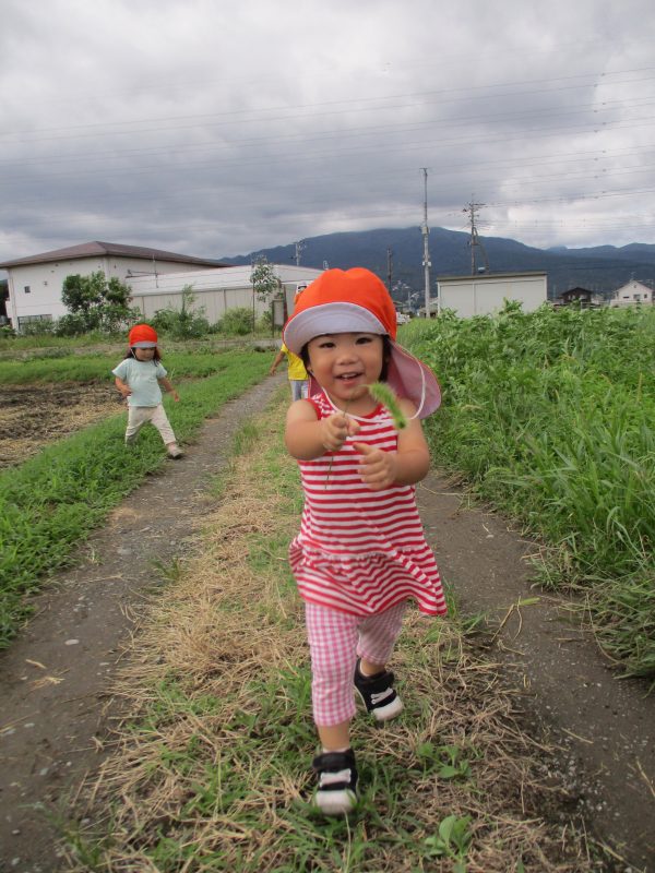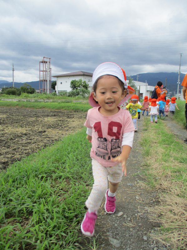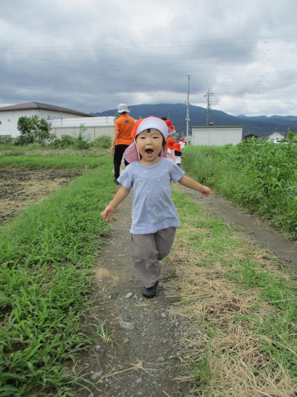 消防署方面にあるあぜ道では、みんなで手を離して伸び伸びと走り回りました♪(^∇^*)