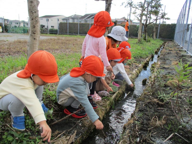 「どんぐりもお散歩だね〜」と声をかけると子ども達自身で「どんぐりコロコロ、どんぐりこ〜」と歌を歌い始めました