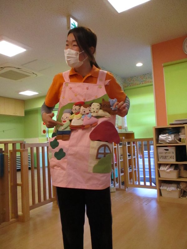 保育者からの出し物はエプロンシアター『おおきなかぶ』![]()