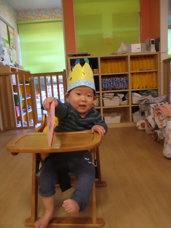 今月はもも組のお友達が1歳を迎え、みんなで盛大にお祝いをしました!