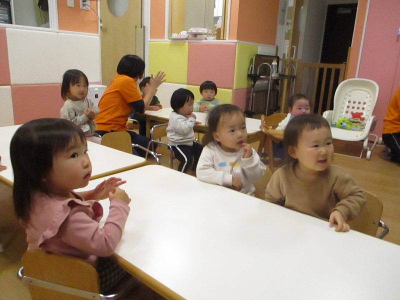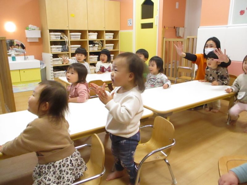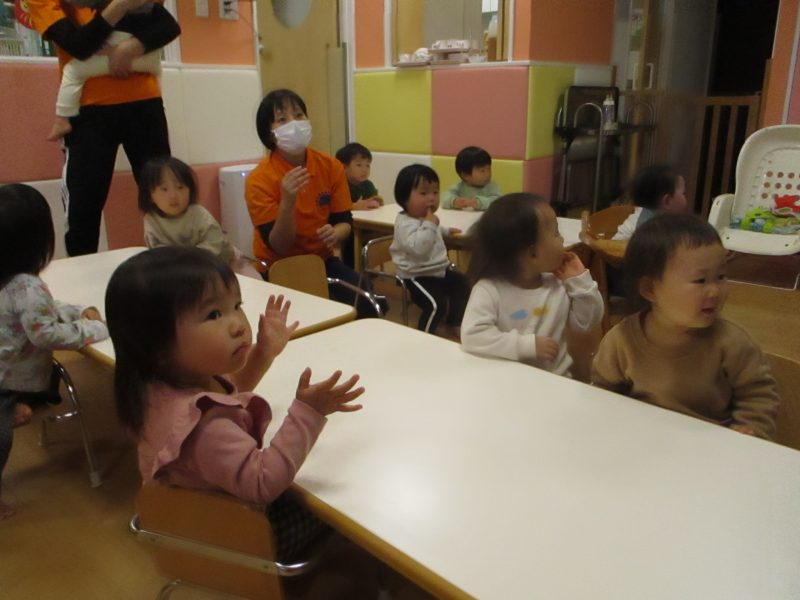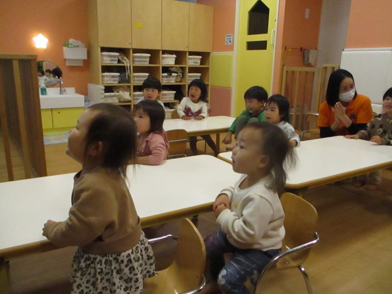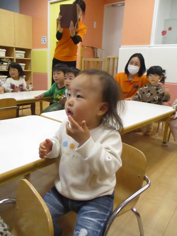 いちご組とりんご組のお友達が元気な歌声を響かせていました?