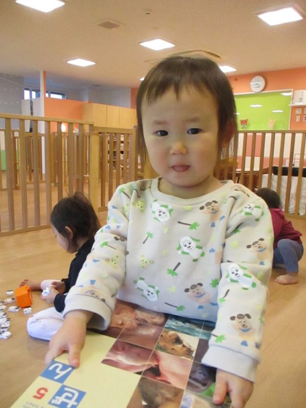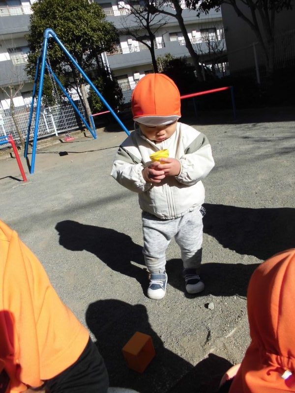 寒さにも負けず、「早く散歩に行きたい!」と散歩を楽しみにしている様子を見ると、私たち保育者も「寒いけど頑張って外へ行こう!」という気持ちになります![]()