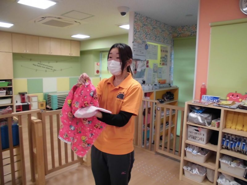 お迎えの際にまた、お渡ししようと一旦預かると名残惜しかったようで肌身離さず持っていました