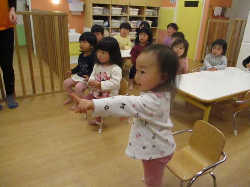 みんな一度席に戻り、次は保育者からの出し物![]()
