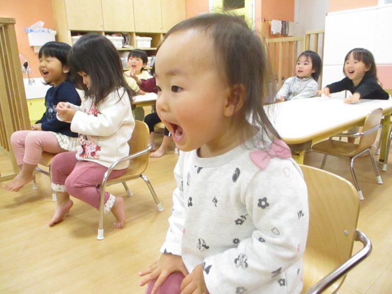 保育者から「何歳になりましたか?」とインタビューをされると「3歳!」「2歳!」と自分の歳の数を話すことができました!!