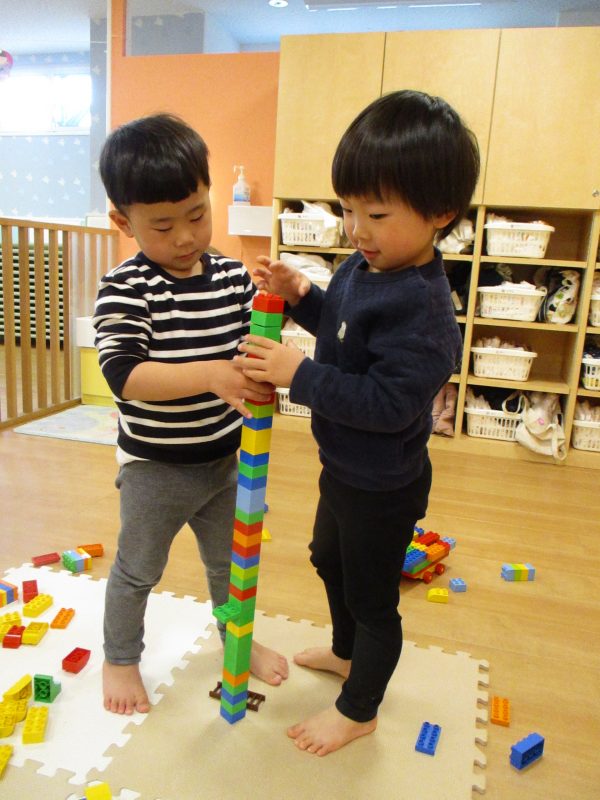ごっこ遊びをしている子ども達を見ると、「一年前より言葉の数が増えたな」「こんな言葉が喋れるようになったんだ」と、一年の成長をしみじみと感じました。今では、保育者が関わらなくても友達との会話ややりとりが成り立っています