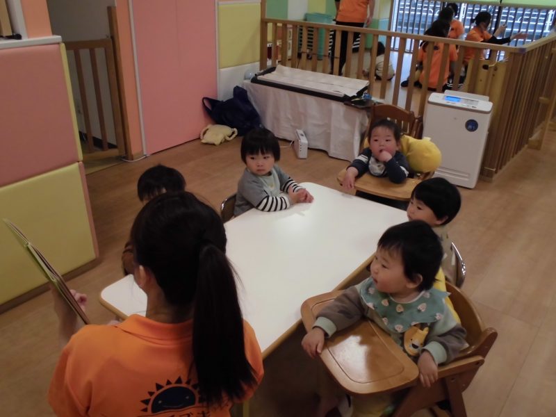 最後に出てきた生き物を見た子ども達は、指を差しながら「あっ!」と言ったり、「おっ!」と言ったり様々な反応をしていました![]()