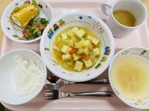 ・今日は子どもたちに人気のカレー。おかわりしてくれた子もいてとても嬉しいです。