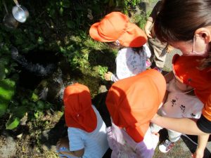 「どこにいくんだろう?」と緊張した表情のお友達も、バギーに乗って鯉や鴨、タンポポなどを見ると笑顔になり興味津々でした![]()