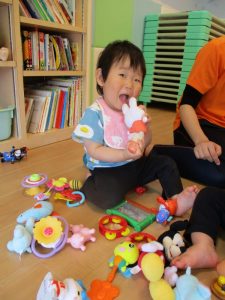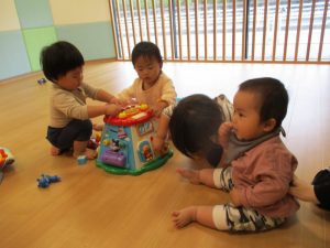 室内では、もも組といちご組は音の鳴る玩具やパズル、ボール遊びをしてのんびりとした雰囲気の中で過ごしています