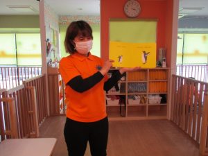 子どもたちも絵本のぺんぎんのように、腕を振ったり、足を上げてみたり、真似をして身体を動かしていました。