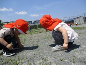前回も書いたように、りんごぐみは砂に絵を描くことに夢中です✏️それを見ていたいちごぐみのお友だちも、何やら一緒にかきかきと楽しんでいます。