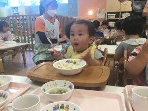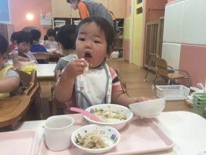 帰ってからは、たくさん歩いてお腹が空いたようで、給食をパクパク