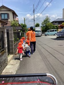 園周辺にお散歩に行くと、「あるこー、あるこー♪」と元気な歌声が子どもたちから聞こえてきます。1人が歌い始めると、他の子どもたちも自然と口ずさみ、いつの間にか「さんぽ」の合唱が始まっています♪