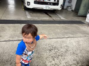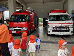 消防署にお散歩に行きました?目の前の消防車?や救急車?に目を輝かせて、見ています?✨