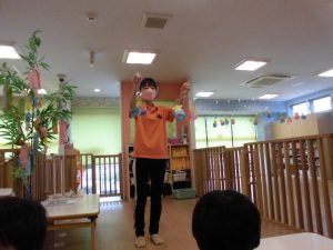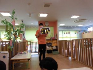 絵本の後に、各クラスで作った七夕の製作を紹介しました![]()