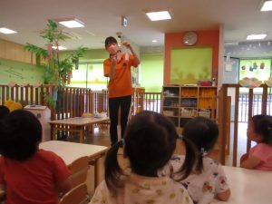 今週から水遊びが始まりましたが、なかなか天候に恵まれず子ども達もちょっぴり残念そうです![]()