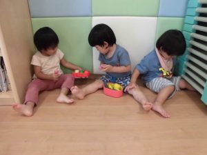 だんだんと保育者やお友達の存在を意識しながら一緒に関わって遊びを楽しめるようになってきたいちご組さん