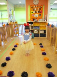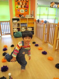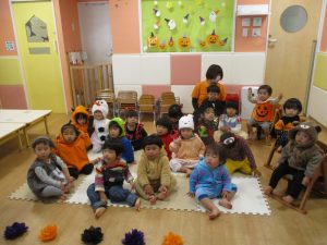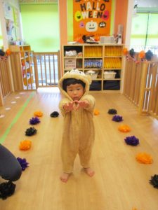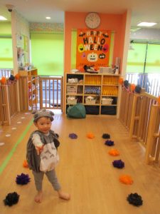 ハロウィン会が始まると、ハロウィンの絵本を見たりお部屋の中でランウェイをしました