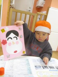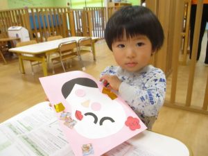 1月の製作という事で、お正月らしい「ふくわらい」を製作しました。